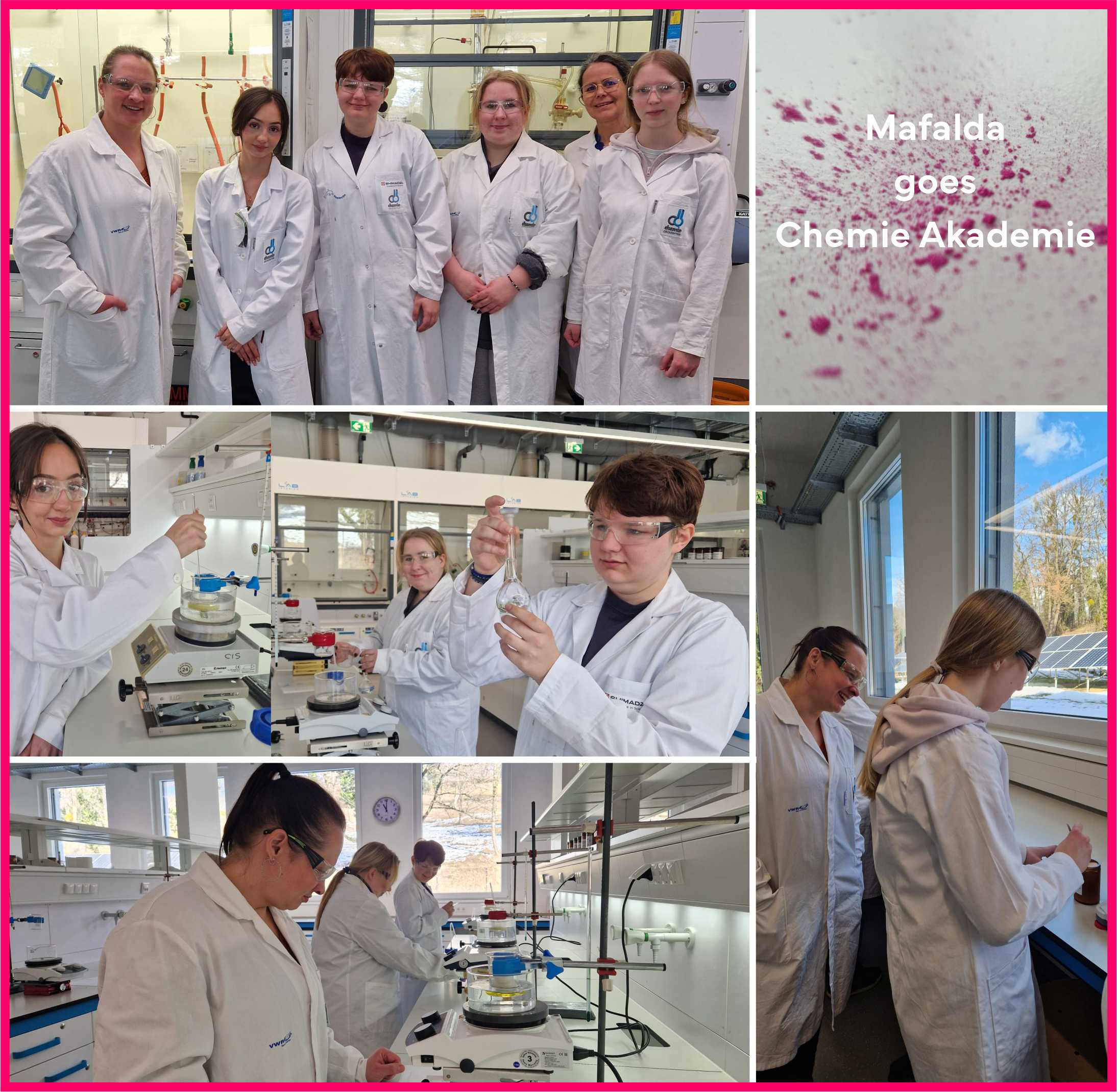 Das Team der Chemie Akademie und des Vereins Mafalda bot jungen Frauen mit Interesse an Technik und Handwerk die Möglichkeit in die praktische Arbeit eines Chemielabors reinzuschnuppern. Die Teilnehmerinnen können so bei der Berufsorientierung unterstützt werden.